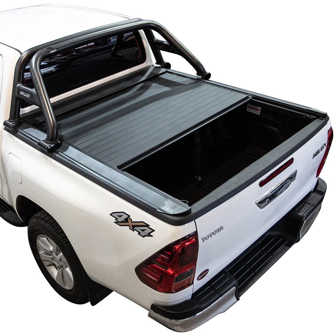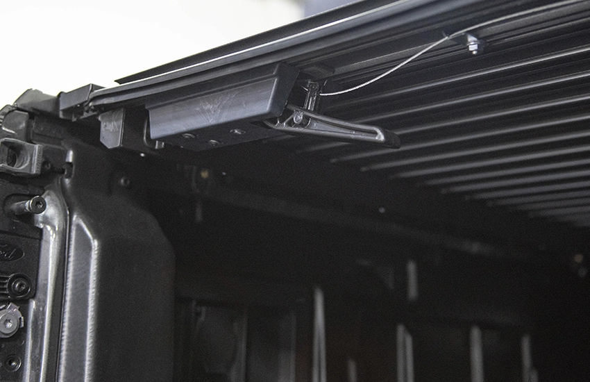 BLOQUEO INTERNO, al cerrar la tapa se traba automáticamente y queda segura al cerrar el portón de la camioneta.